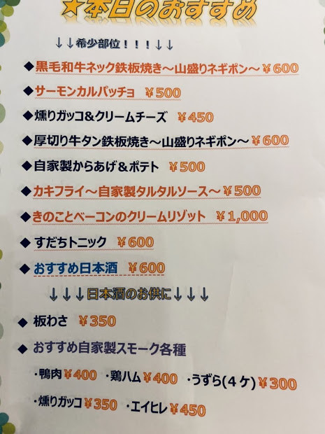 今日は、洋風ダイニングてつの『本日のオススメ』をご紹介♪