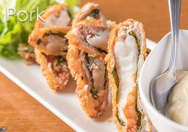 ぷりっとした新鮮なエビを香り高いシソで包み、ジューシーな豚肉で巻いて揚げました!!