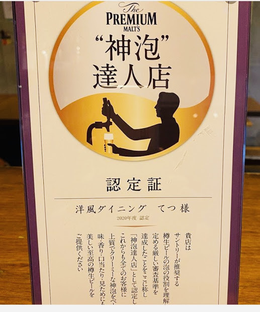 実は今年の初めに、サントリーさんから【神泡達人店】の称号をいただきました!!