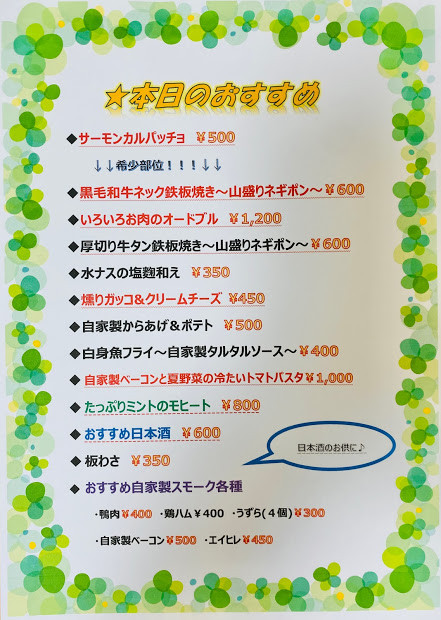 本日のオススメは、、、