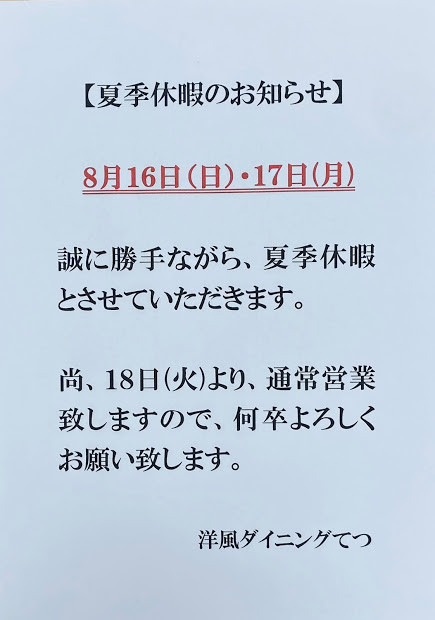 【夏季休暇のお知らせ】