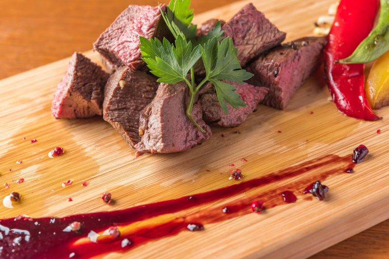 石橋の美味しいイタリアンと旨い酒がおすすめの洋風ダイニングてつでは、兵庫県豊岡市の猟師さんから直送された新鮮な鹿肉を使用し、鹿肉ステーキを提供しております。