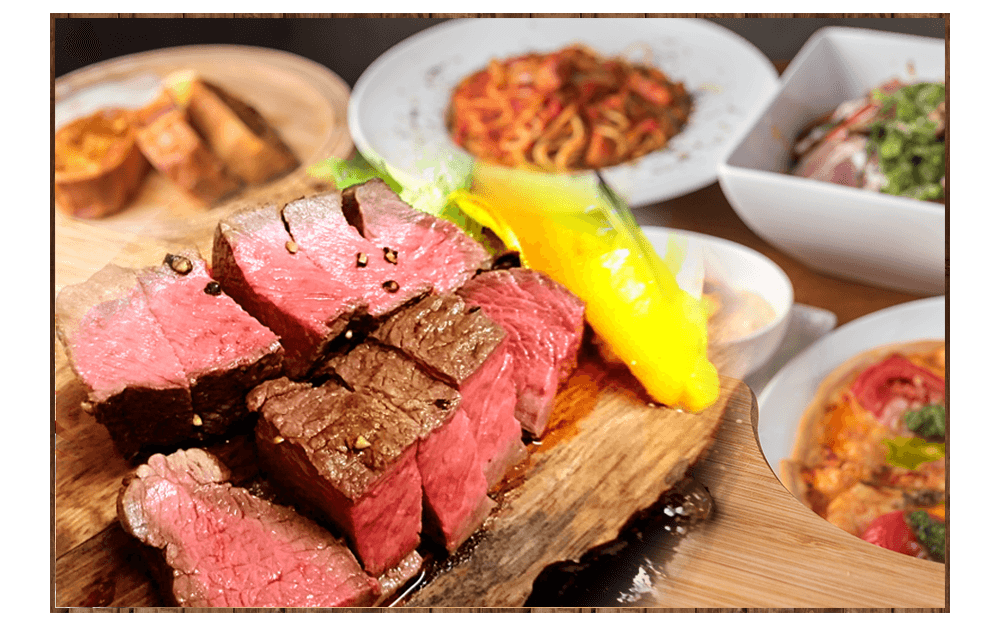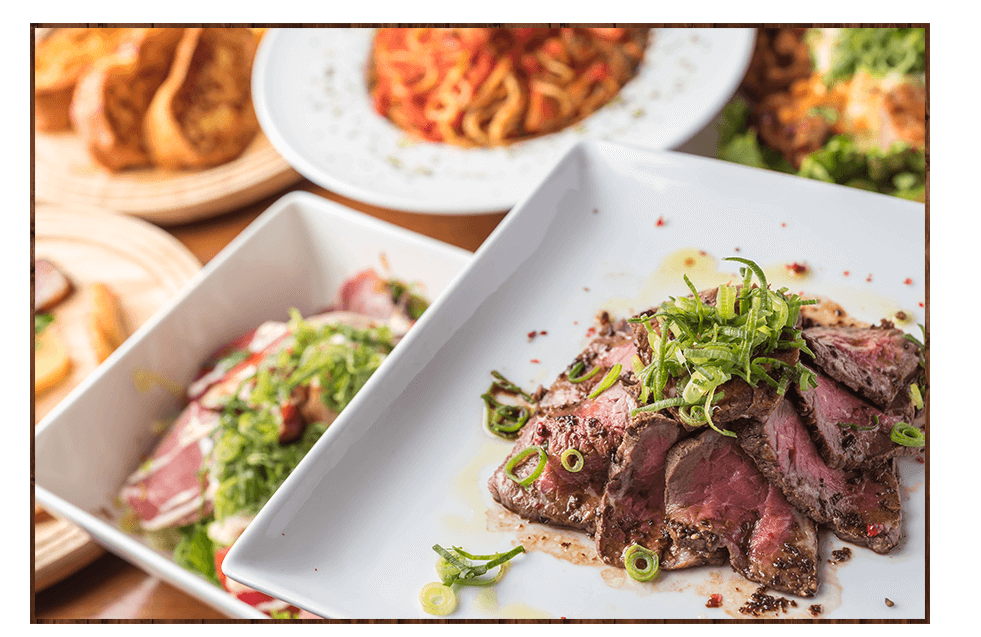 食欲を満足させるのが、当店自慢の「自家製ローストビーフ食べ放題コース」。 牛肉のおいしさを堪能できるローストビーフを たっぷりとご堪能ください。 もちろん、自家製スモーク盛り合わせや デザートもお付けしています。